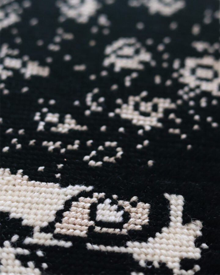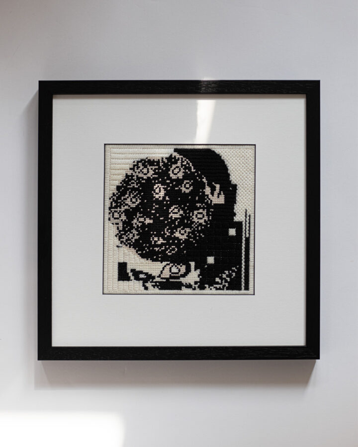 After the Upload is an ongoing series of hand embroidered needlepoints exploring the intersection of digital degradation and physical making. Each work takes a heavily processed internet image; deep fried, compressed, or corrupted beyond legibility, and translates it stitch-by-stitch into a tactile object. The process is deliberate: where digital culture accelerates decay, the embroidery slows it down and makes it permanent. What remains is neither fully digital nor fully craft, but something caught between two kinds of noise.