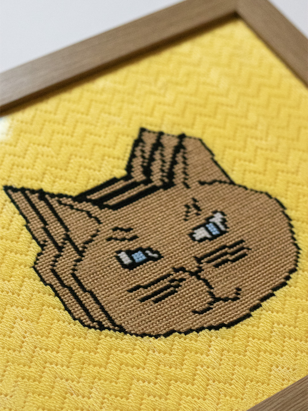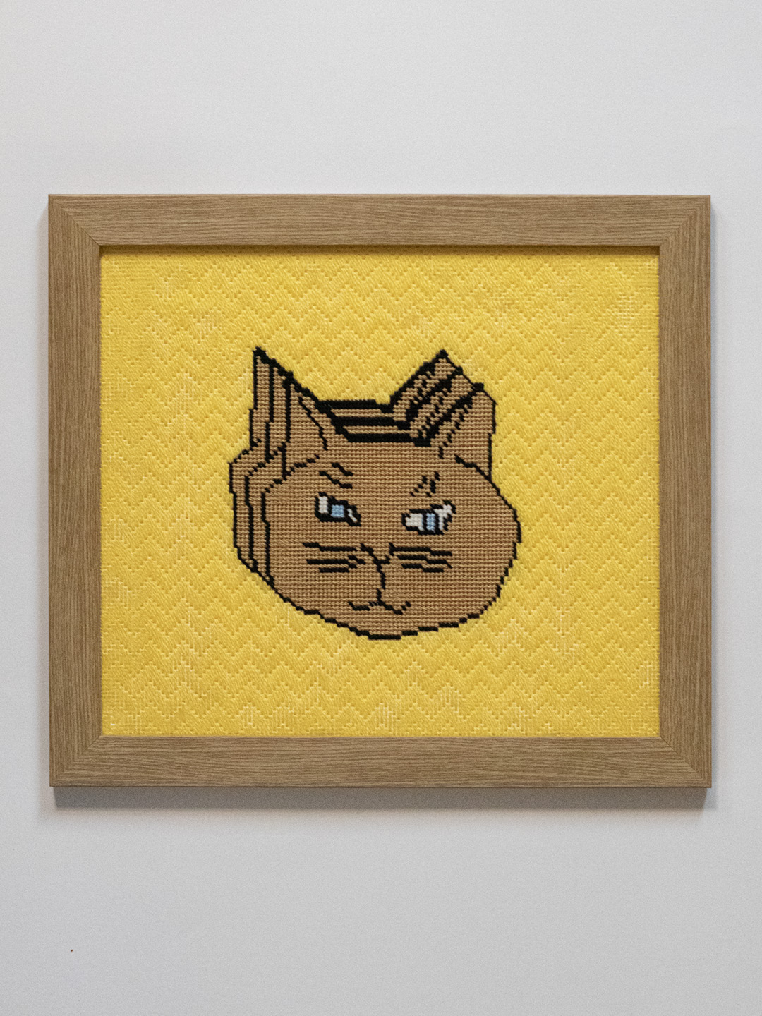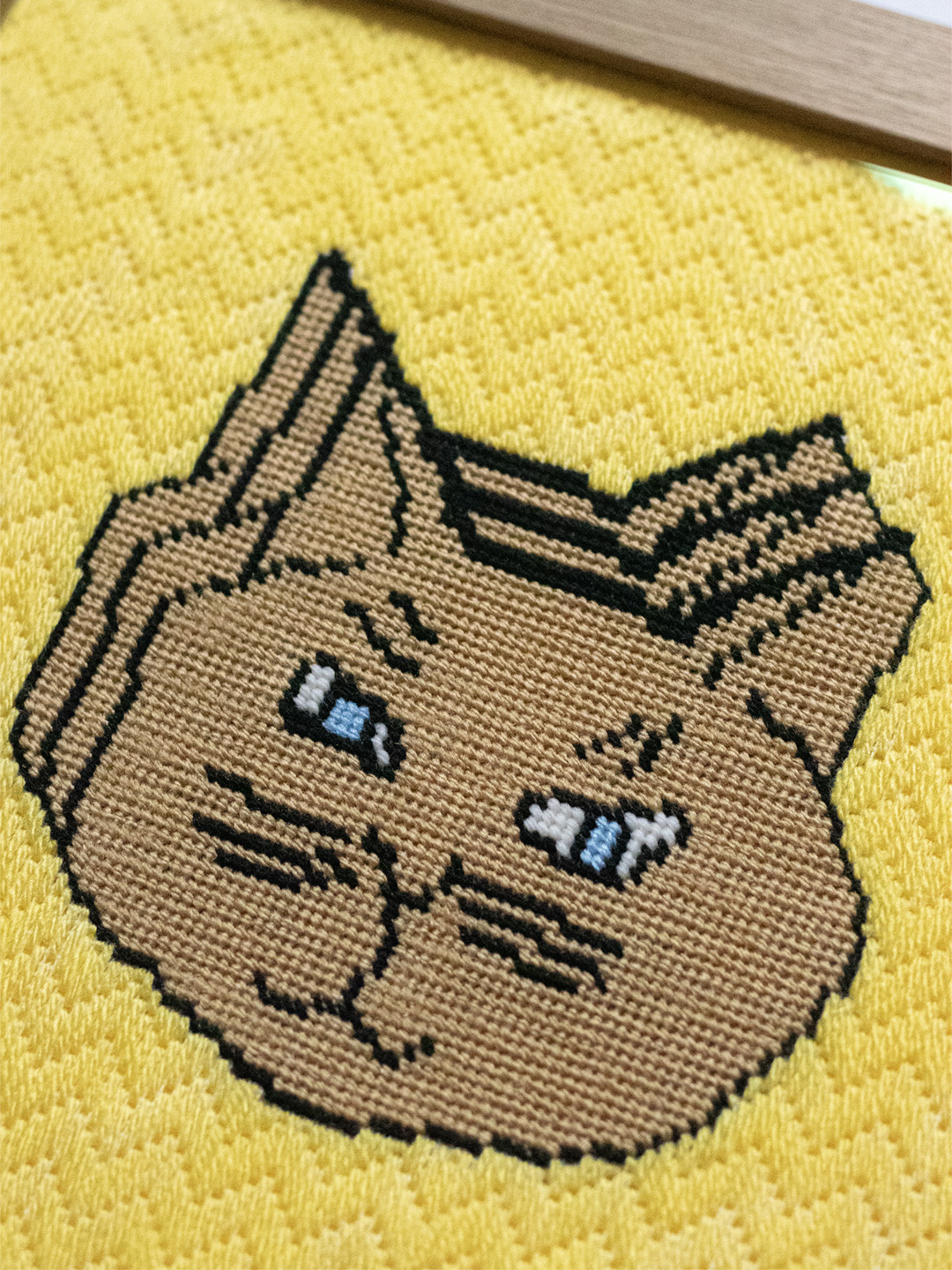 A stitched celebration of caaat energy, rendered in needlepoint with a deliberately off-kilter twist 🐈 the face is familiar, but something’s a little… glitched
